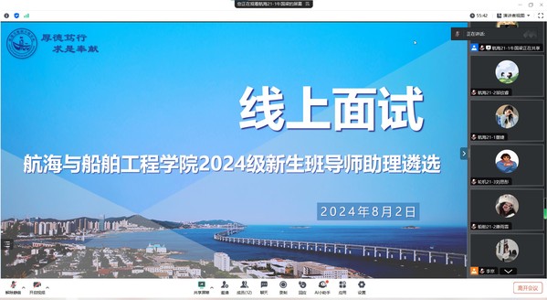 本次选拔程序规范、公开透明。在线上面试中,分为结构化问答和情景模拟问答两个环节,问题涉及思想引领、日常管理、班级建设、准军事化管理建设、心理辅导、活动组织策划等多方面。面对这些问题,同学们沉着冷静,条理清晰地阐述了自己的观点和计划,表达了愿为学院2024级新生工作贡献智慧力量的积极态度,充分展现了航船学子过硬的素质能力和良好风采。