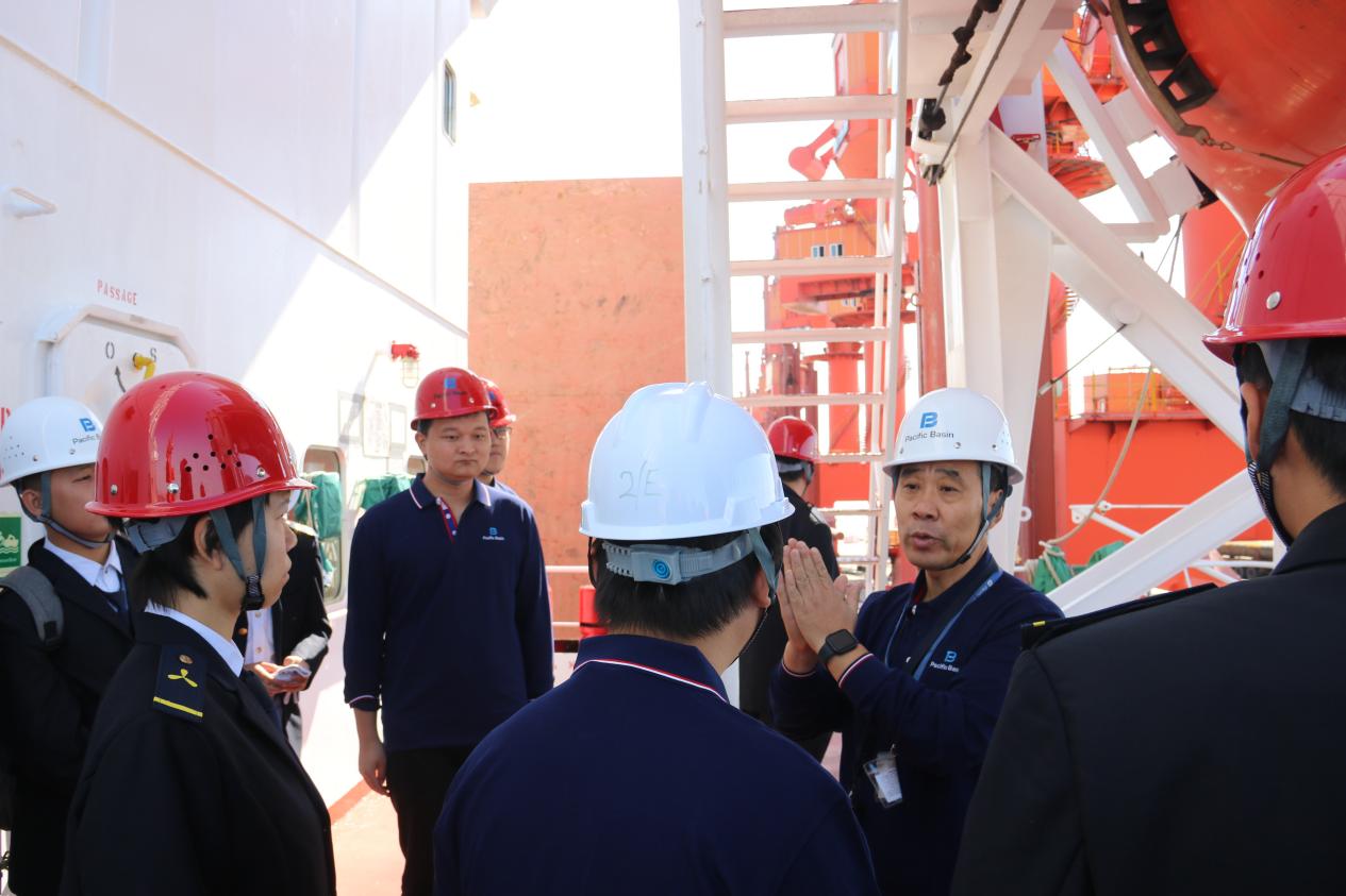 为帮助航海类专业学生更好地了解海员职业,树立专业思想,明确职业发展方向,10月10日,麻豆传媒 党委副书记陈禹娜、航海专业教师王庸凯、轮机专业教师孙琪辉、辅导员郎幸老师带领相关专业学生,同香港太平洋航运集团有限公司(PACIFIC BASIN SHIPPING LIMITED)、中国大连国际经济技术合作集团有限公司航业分公司、大连鑫裕盛公司等院企联合培养单位代表共赴鲅鱼圈港开展参观基维斯特轮(Key West)的实践活动。
