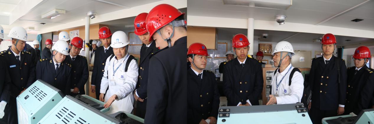 在船长胡国生的带领下,同学们首先进入了船舶的驾驶室。这里,船长亲自为同学们讲解了驾驶室的布局、各项仪表的功能以及航行过程中的操作要点。同学们通过亲身体验,感受到了航海工作的复杂性与严谨性,对航海技术有了更为直观的认识。