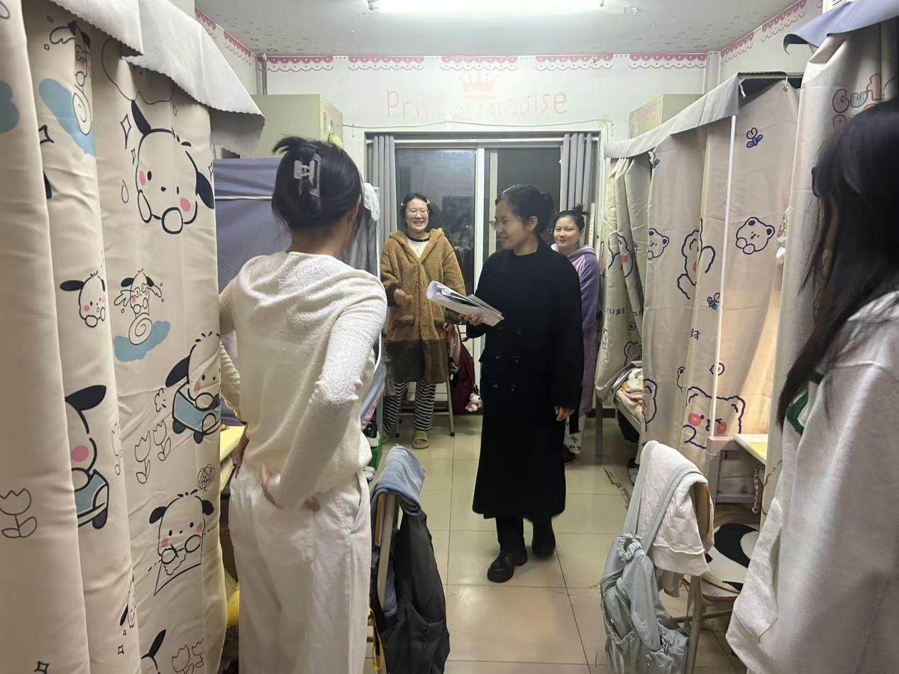 在活动中,李琦老师每到一间寝室,都着重强调了用电安全、内务整理等方面的要求。她对环境卫生较好、宿舍氛围活跃的寝室给予了表扬,并鼓励同学们继续坚持。同时,对存在问题的寝室,她提出了具体的整改建议。