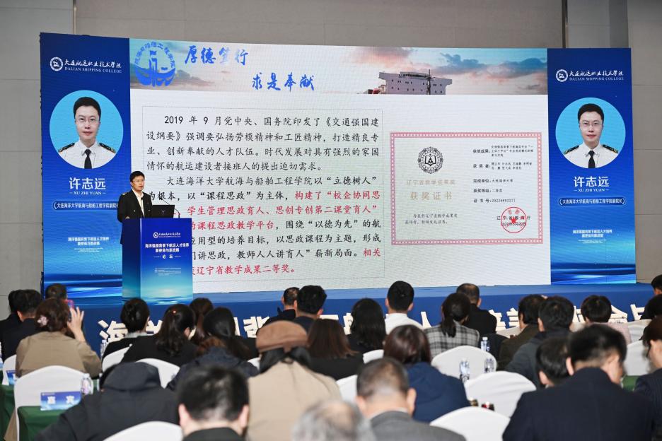 副院长许志远在会上作《基于三位一体的航海教育课程思政体系融合与构建》专题报告,分享了我校航海类专业课程思政的教学成果和实践经验。