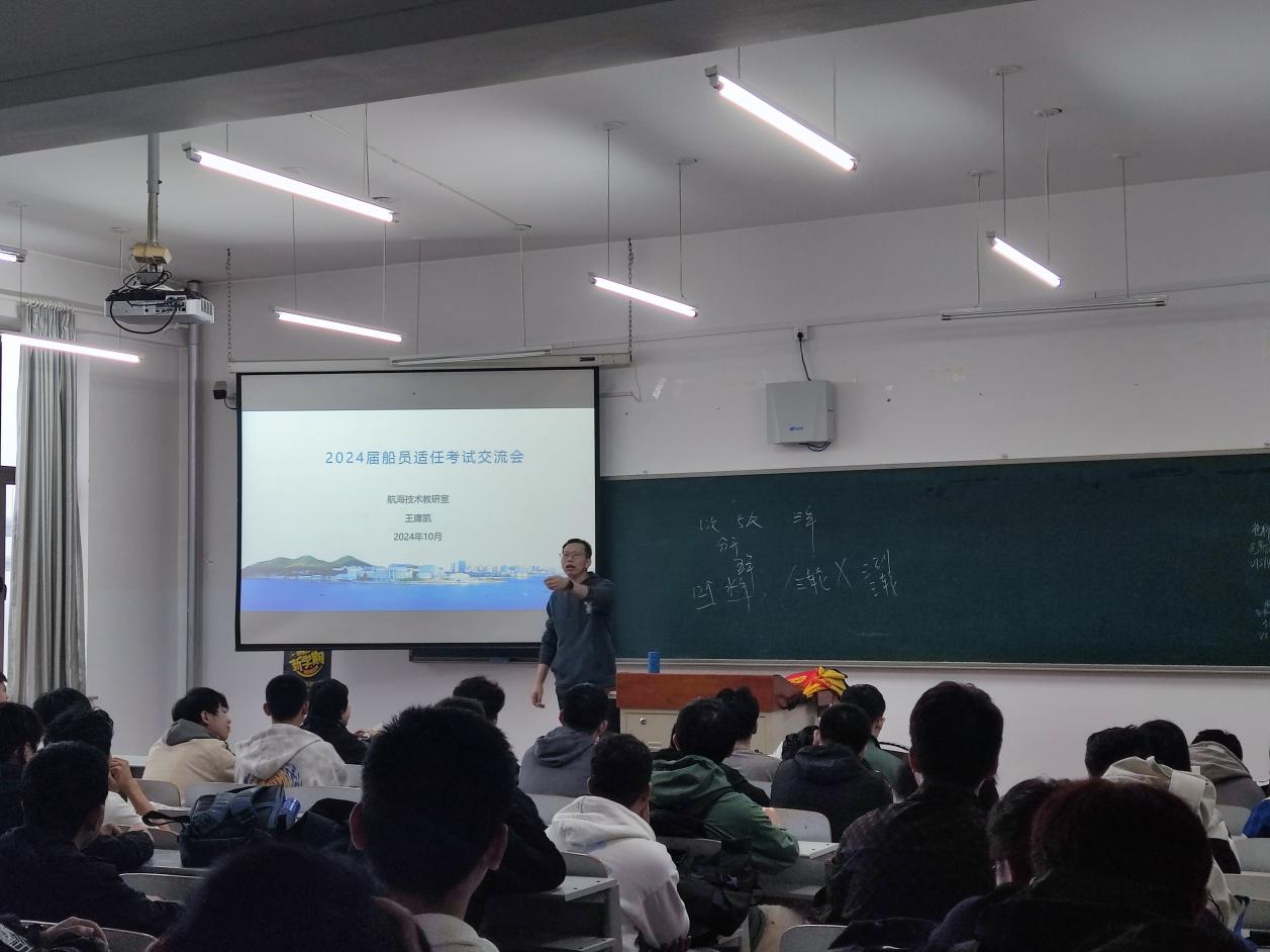 为加强新时代船员队伍建设,促进我院航海类专业学生高质量就业,近日,麻豆传媒 于獐子岛教学楼,开展以船员适任考试为主题的交流讲座,会议由航海技术系教师王庸凯主持,2021级全体学生参加。