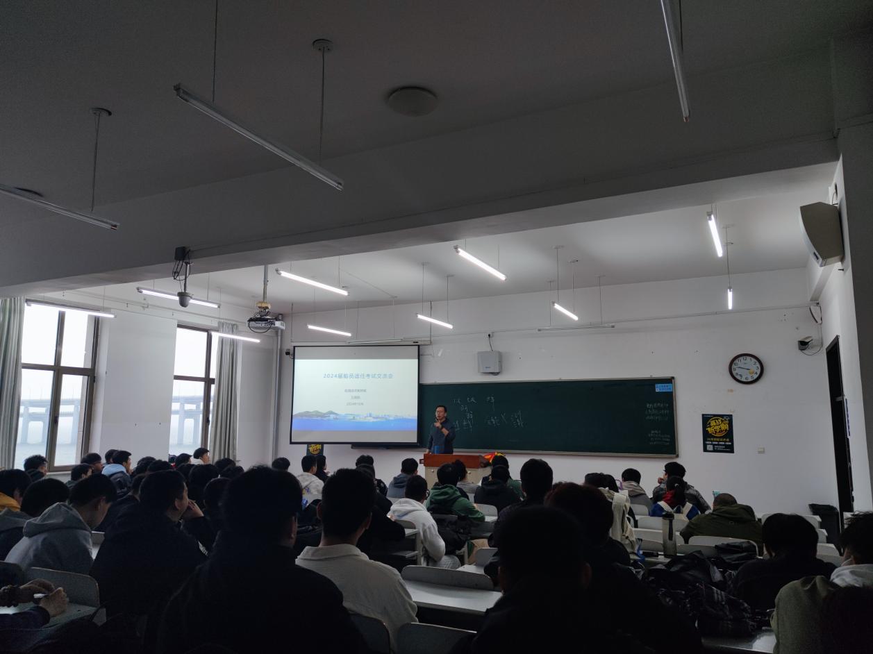 会上王庸凯老师对海员适任考试进行了详细的讲解,本次讲座涵盖了船员适任证书考试的多方面内容。王庸凯老师为同学们明确了考试的有关规定,详细阐述了考试次数、时间安排以及报名条件与报名方式,为有意愿参加考试的人员提供了准确的指南。