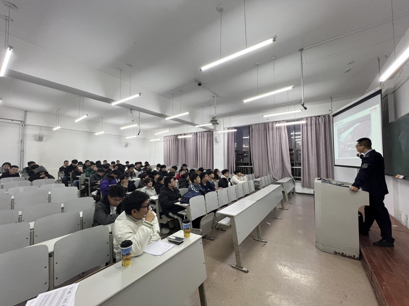 在讲座过程中,矫主任详细介绍了火灾初期的扑救方法、火场逃生技巧以及消防器材的正确使用方法。他特别强调了“四懂四会”(四懂即懂火灾的危险性、懂预防火灾的措施、懂扑救火灾的方法、懂逃生的方法;四会即会报警、会使用消防器材、会扑救初期火灾、会组织人员疏散)在校园消防安全中的应用,鼓励师生将所学知识应用到日常生活中,做到防患于未然。