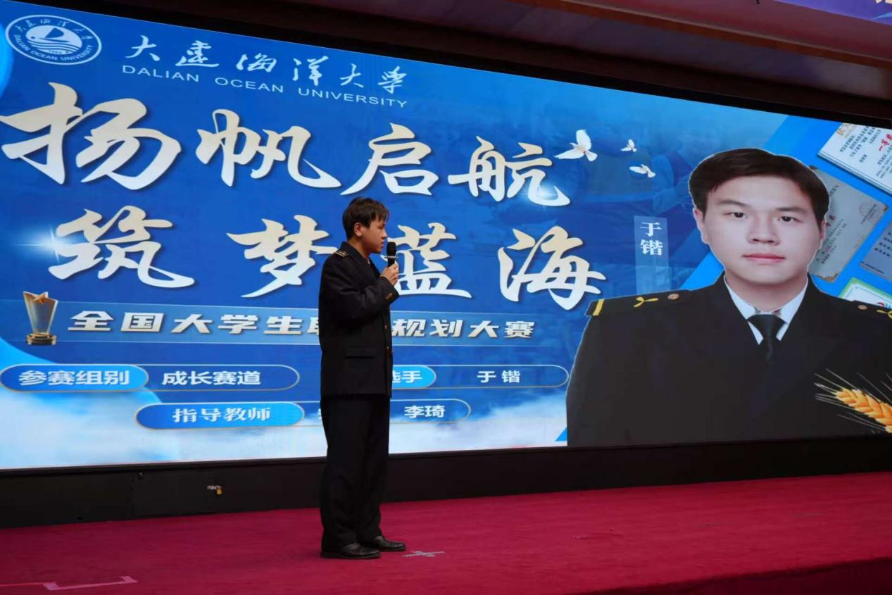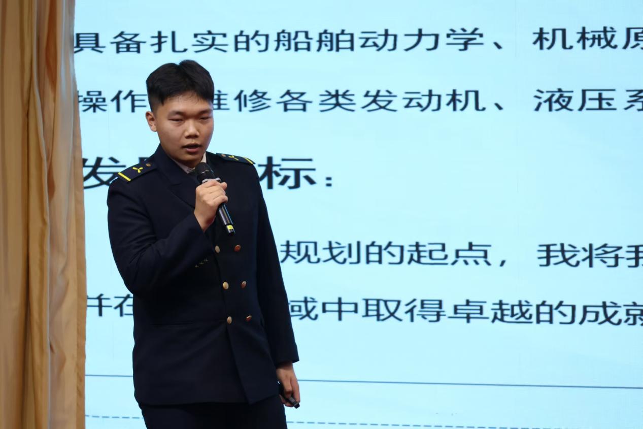 成长赛道则聚焦于学生的长期发展与综合素质提升。选手们以长远眼光,规划个人在不同成长阶段的目标与任务。来自我院轮机工程专业的于锴选手脱颖而出,分享了自己跨学科学习与多元实践的成长规划,他以长远的眼光规划个人在不同成长阶段的目标与任务,展现出对未来的强烈渴望与前瞻思维,其勇于挑战自我的精神给评委和观众留下了深刻印象,荣获校级三等奖的好成绩。