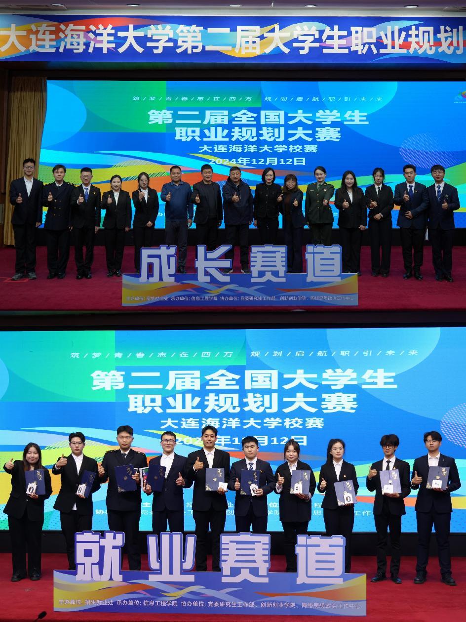 在就业赛道上,选手们依据所学专业与个人兴趣特长,精心规划求职路径与职业目标。来自我院的张盛霖同学表现尤为突出,提出了在轮机工程师行业凭借对行业深入的调研和清晰的自我定位,登台展示了一份从基层岗位逐步晋升的职业规划蓝图。张盛霖同学扎实的专业知识在其规划中得以充分展现。其翔实的数据支撑和可行的实施策略赢得了评委的高度认可,彰显了学院学生对专业知识的深刻理解与实际应用能力,荣获了此次比赛就业赛道的第一名。