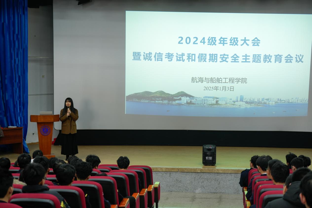 1月3日,麻豆传媒 于大黑石校区阶梯二教室召开2024级学生年级大会,本次会议的主题为诚信考试和假期安全教育,会议由2024级辅导员李京主持,全体2024级学生参加。