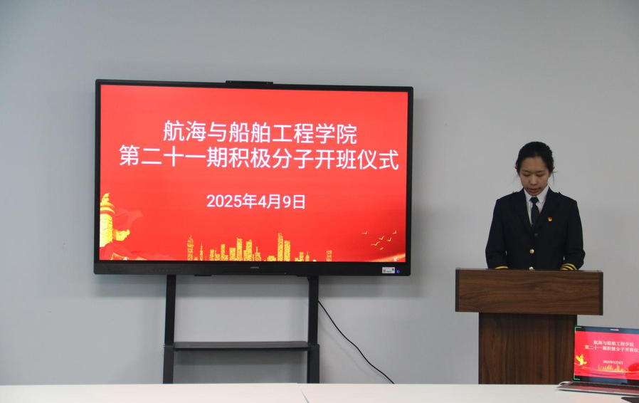 船舶23-1班学生高永奇代表第二十一期全体培训班学员进行发言,他表示,能够成为入党积极分子,要坚定理想信念、珍惜学习机会、积极向党组织靠拢,以实际行动争取早日成为一名合格的共产党员。
