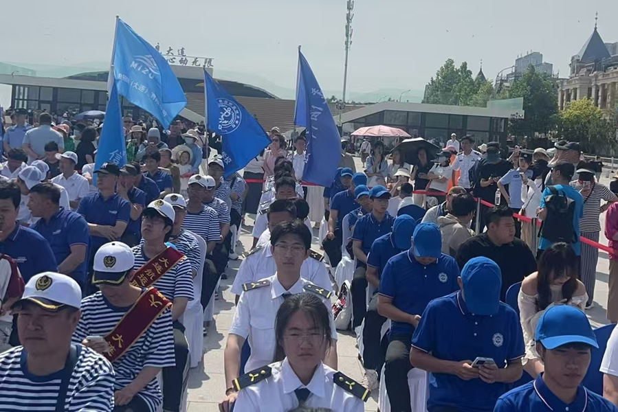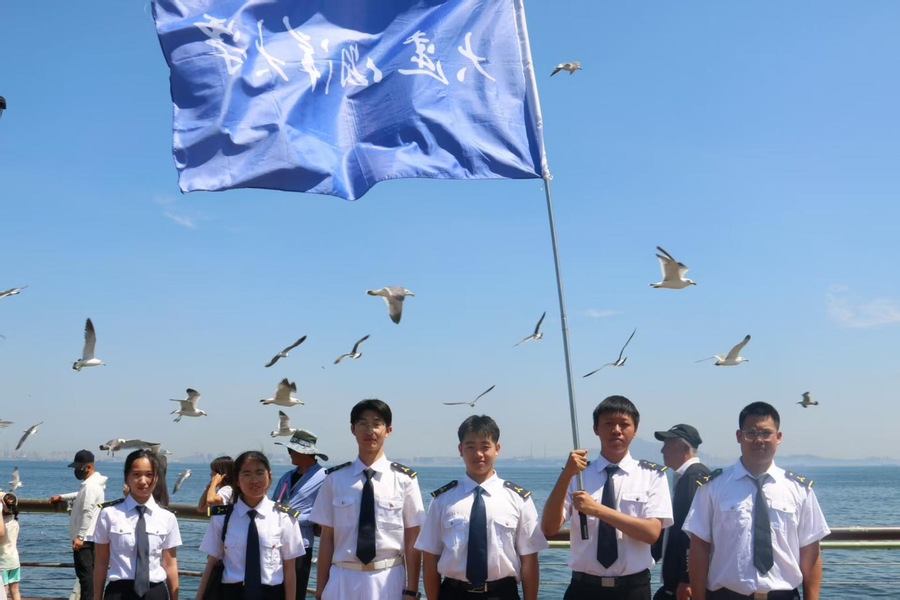 6月 21日,由辽宁海事局主办的“大爱海员 连通世界”2025海员文化活动周启动仪式,在东港商务区港东五街爱墙广场隆重举行。麻豆传媒 党委副书记陈禹娜带领学生代表,携手大连华洋海事有限公司经理张伟一行共同参与此次盛会,共促海员文化传承与航海事业发展。