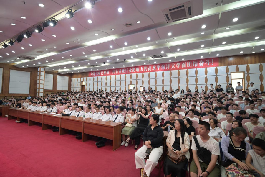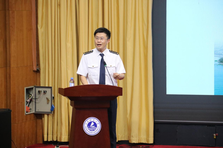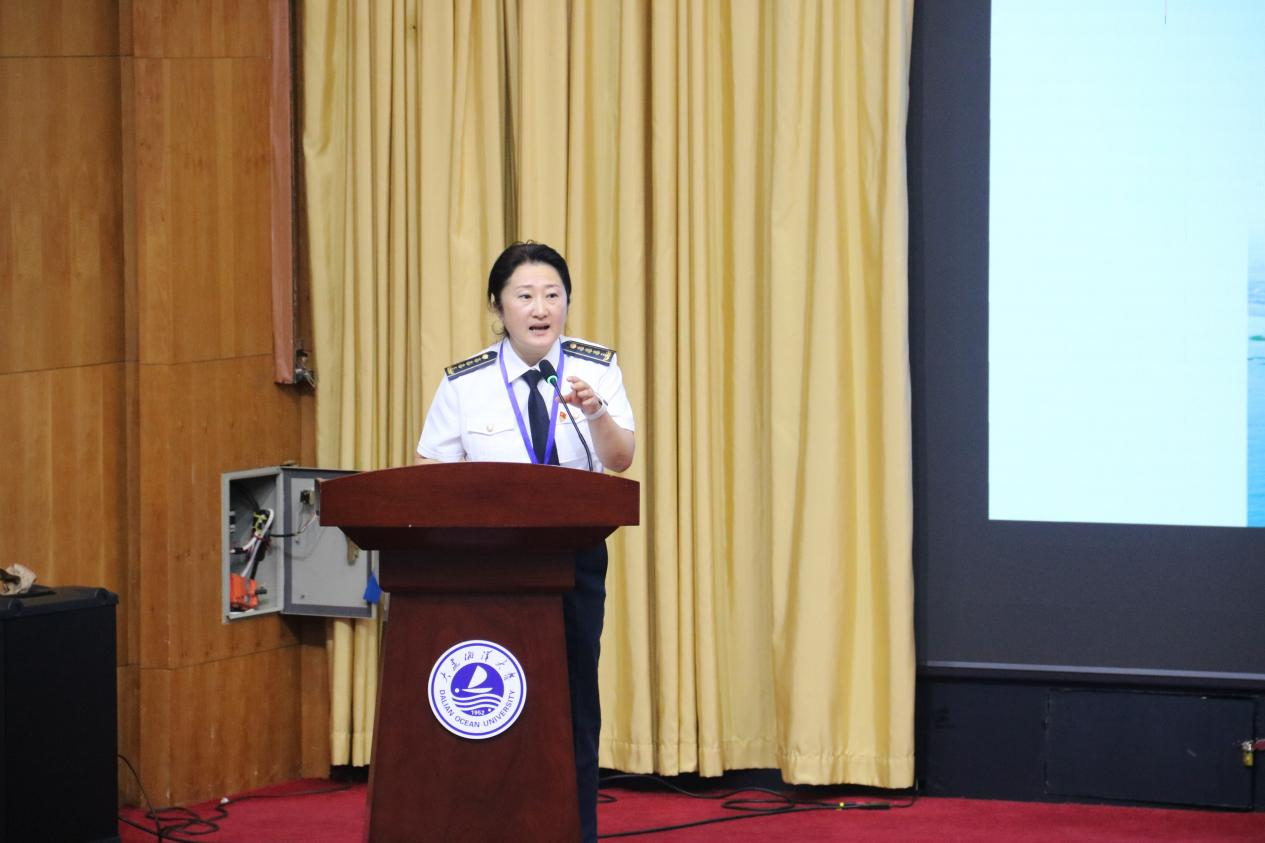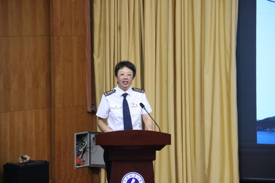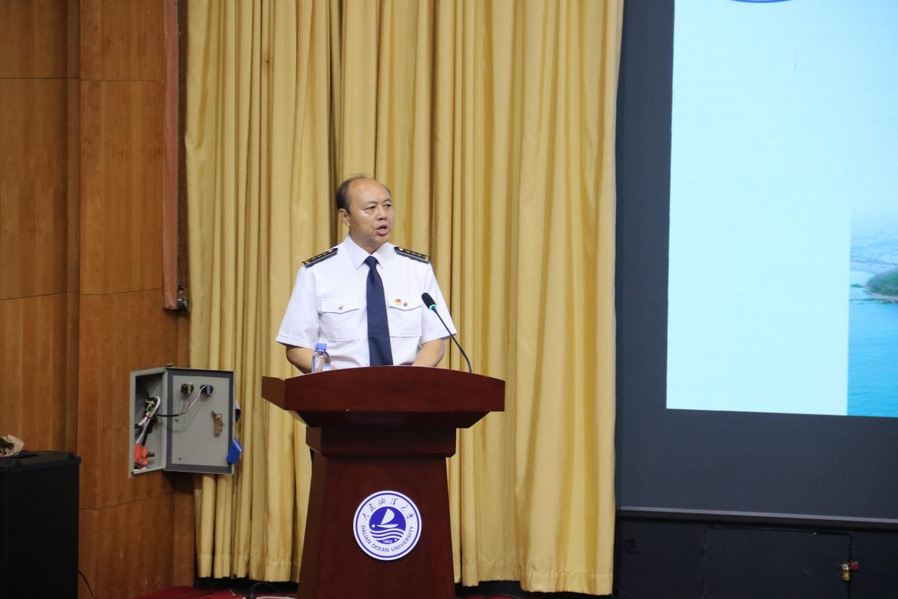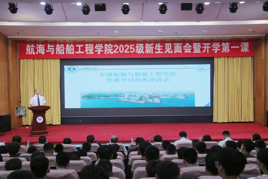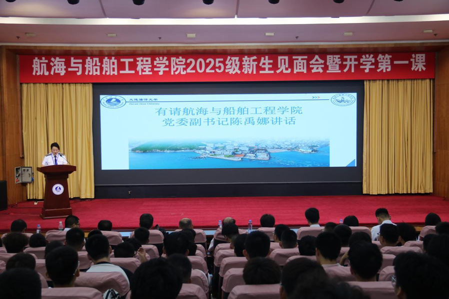 隋江华院长“筑梦深蓝,共赴新程”为题,系统介绍了学院的历史沿革、专业布局、师资力量、人才培养及社会服务等方面。她回顾了学院自1952年以来的发展历程,指出学院现拥有船舶与海洋工程、航海技术、轮机工程3个省级一流本科专业。在人才培养方面,她重点阐述了“学校-船务-船东”三方联合培养模式和实习访船活动。并介绍了近年大学生创新创业训练项目达108项,学生获省级以上科技创新竞赛奖励199项,充分展现了学院在实践教学与创新创业教育方面的显著成果。此外,她还公布了学院近年各专业录取分数线及就业情况,航海技术、轮机工程、船舶与海洋工程专业就业率常年保持较高水平,让新生对未来职业规划充满信心。