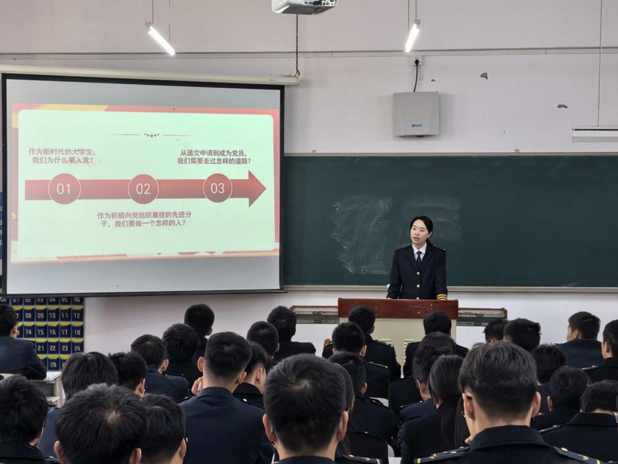会上,于洋以“为什么要入党”为切入点,深入阐释了中国共产党的领导是历史与人民的必然选择。她指出,加入党组织不仅是把个体理想追求融入党和国家事业的重要途径,更是新时代青年传承红色基因、赓续精神血脉的光荣使命。随后,围绕“要做一个怎样的人”,于洋对全体同学提出殷切期望,勉励大家坚定爱国情怀、锤炼品德修养,努力成长为有理想、敢担当、能吃苦、肯奋斗的新时代青年。最后,她系统介绍了入党流程,从递交申请书到接受组织培养考察的各个环节逐一讲解,并强调关键在于付诸实践。她鼓励同学们端正入党动机,在日常学习生活中积极作为,通过参与各类活动、提升政治理论素养等具体行动,主动向党组织靠拢。