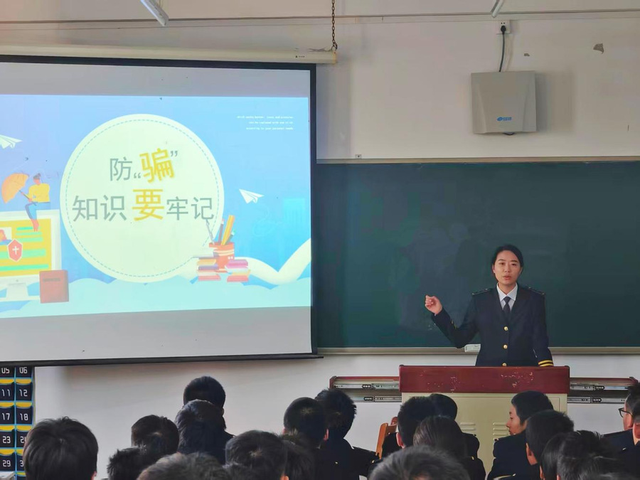 会上,于洋围绕当前校园内高发的几类诈骗形式,重点剖析了网络游戏虚假交易、奖助学金诈骗等专门针对大学生群体的常见骗局。她结合“虚假刷单返利”“冒充电商客服”“伪造校园贷注销”等一系列真实案例,生动拆解了诈骗分子的作案手法,深入揭示了其利用学生“兼职赚钱”“追求便利”等心理布设话术陷阱的层层套路,让同学们切身感受到网络诈骗的隐蔽性与巨大危害。于洋还重点强调了“八个凡是”防诈原则,引导大家在思想层面筑牢安全防线。此外,她表示将在年级群、班级群等线上平台常态化推送防骗技巧与最新案例,实现“线下宣讲+线上预警”的双重防护机制。