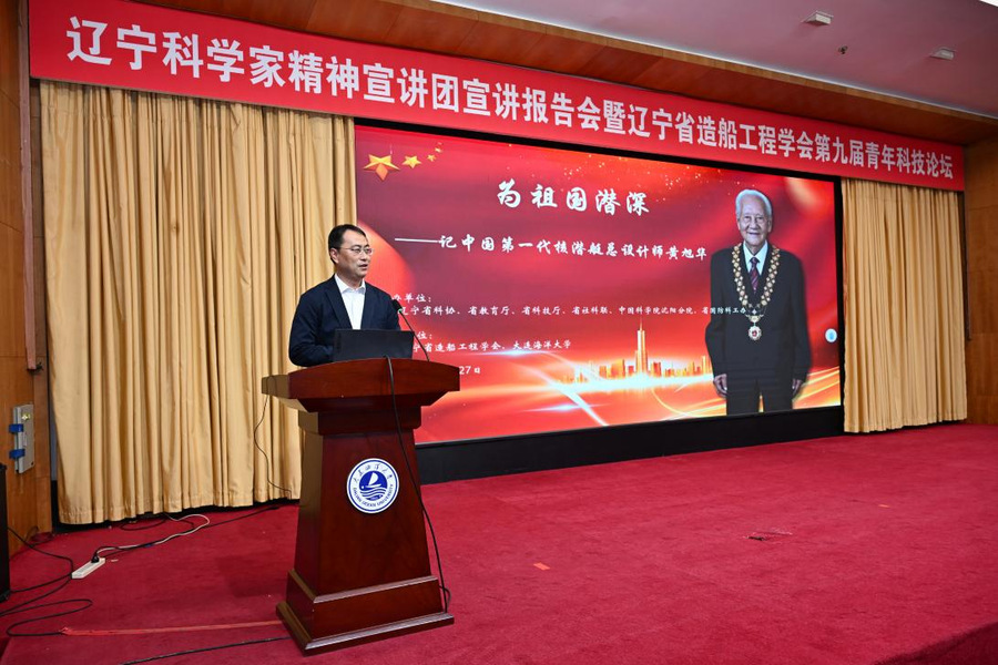 紧接着,大连外国语大学大学生网络思想政治教育中心主任王滨生教授,以《为祖国深潜——记中国第一代核潜艇总设计师黄旭华》为题,通过讲述黄旭华院士隐姓埋名、以身许国的感人事迹,将“热爱祖国、无私奉献、自力更生、大力协同”的科学家精神内核,深深植入了每一位青年听众的心中,引发了强烈的共鸣。