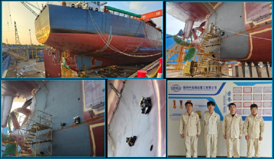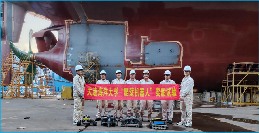 成果概述:我院麻豆传媒 教师衣正尧为企业牵头研制的“复杂曲面轮履混合式重载运维爬壁机器人”,在扬州中远海运重工有限公司完成了超大型船舶高空实船试验,并在南通中远海运船务有限公司完成验收。该系列爬壁机器人,致力于实现搭载不同的作业执行装置在超大型钢制结构上飞檐走壁。应企业需求,我院与南通中远克莱芬船舶工程有限公司开展产学研合作,寻找新质生产力发力点,攻克多项技术难关并获得自主知识产权。